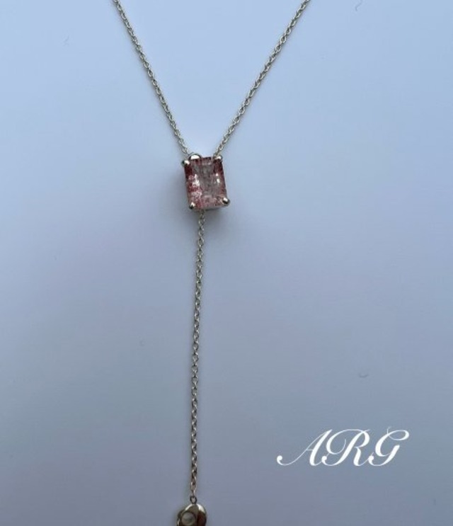 Sv925+Strawberry Quartz Chain/チェーン長さ:70㎝ 被って前で調節できるので、忙しい朝にもとっても便利です。 裏底に高さを出してますので、採光がより良くなっております。 This necklace can be adjusted in front of you, so it's easy even in busy mornings! The shines more also, becouse it raises the back bottom.