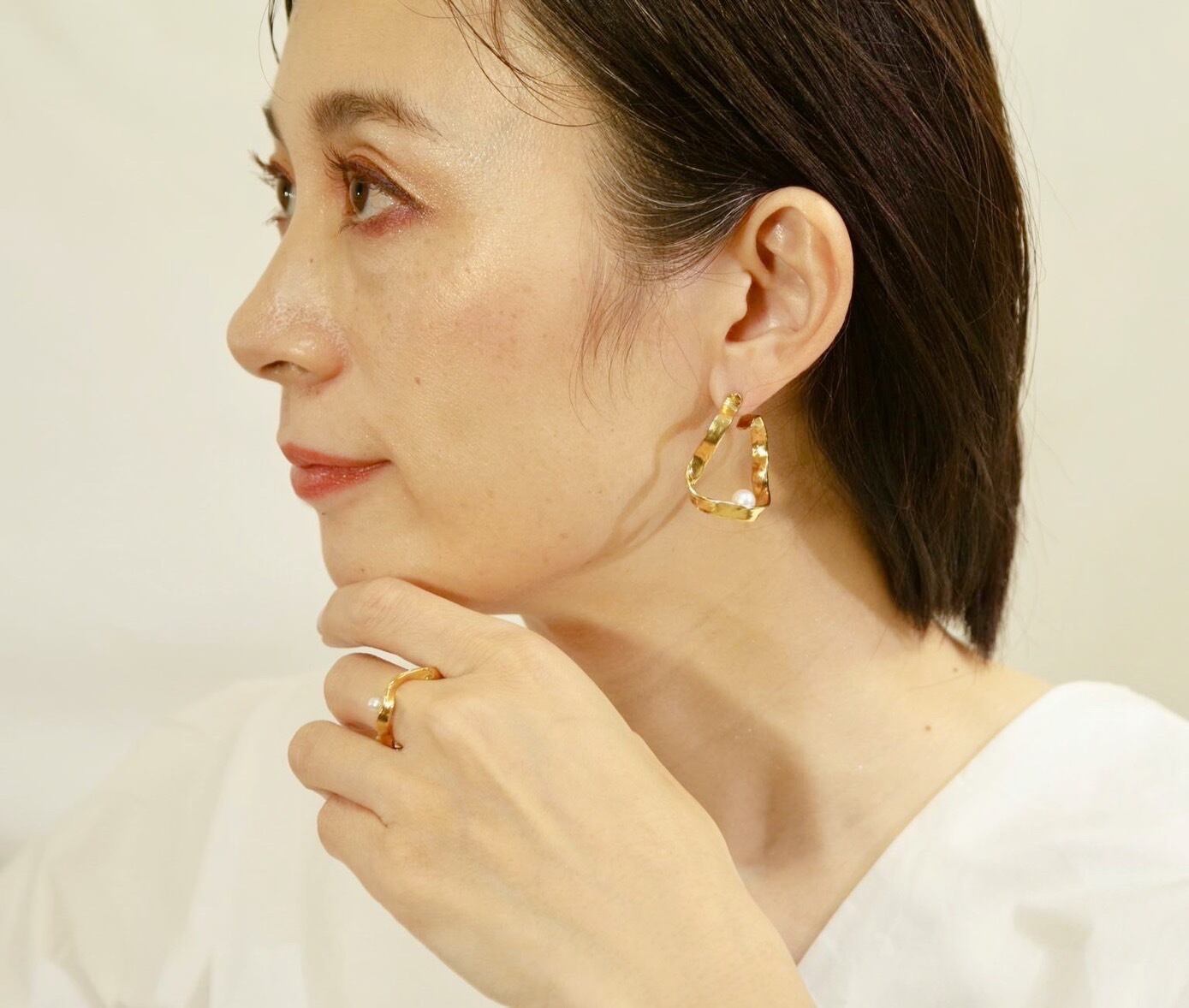 パールが直接台座に触れないよう、置いたときの角度にも配慮しました。