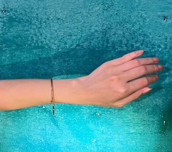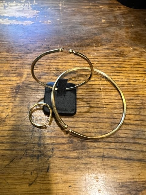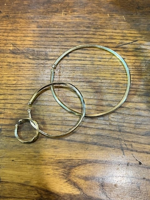 真鍮 + K18GF 3サイズの内、一番大きなバングルになるタイプです。 1個での販売となります。 最後の着画は小サイズと重ねてみました。