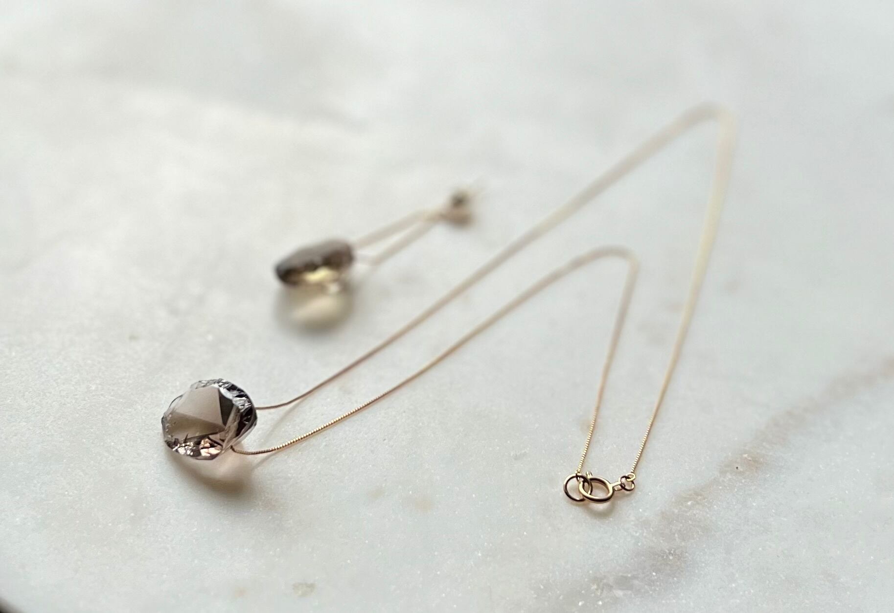 伝統的な技法である”かっこみ”でカットされたスモーキークォーツのピアス
