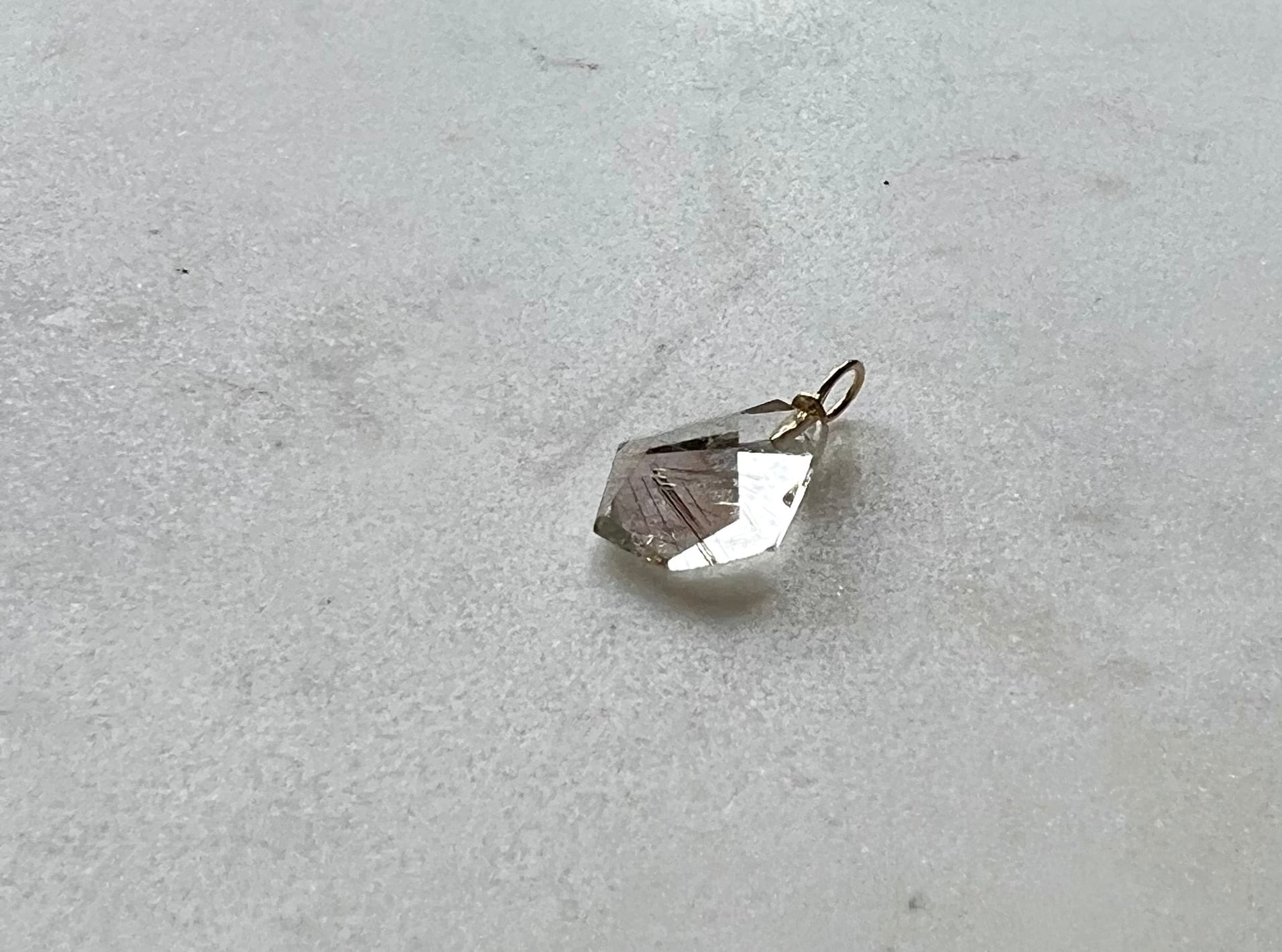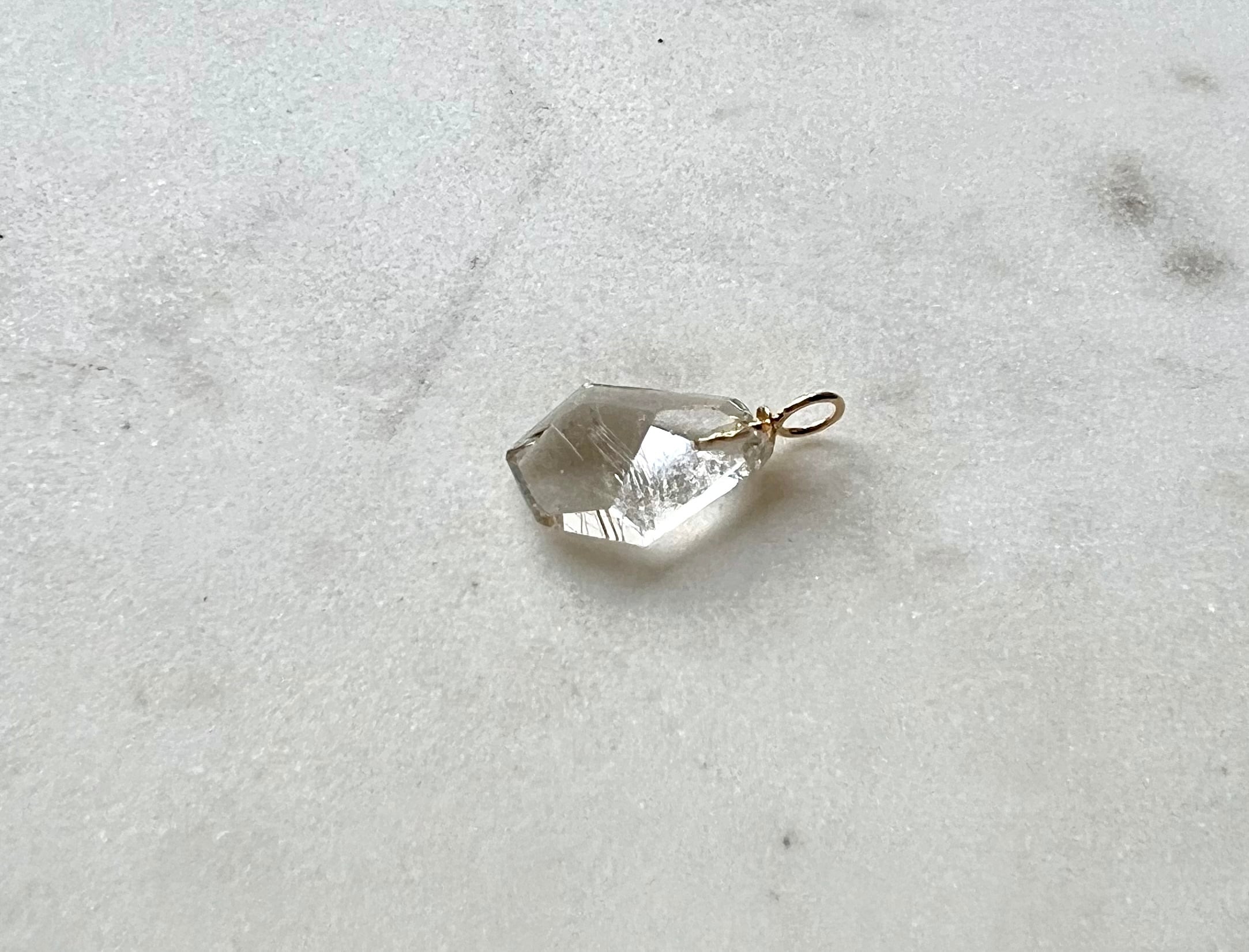 This captivating K18 pendant top and earring component features the mesmerizing brilliance of rutilated quartz. The luxurious K18 material and the sparkling allure of the rutilated quartz come together to create a striking, standout accessory. Enjoy its versatility by wearing it as a pendant on a necklace or switching it to an earring component. Perfect for a range of occasions, from casual to formal settings.