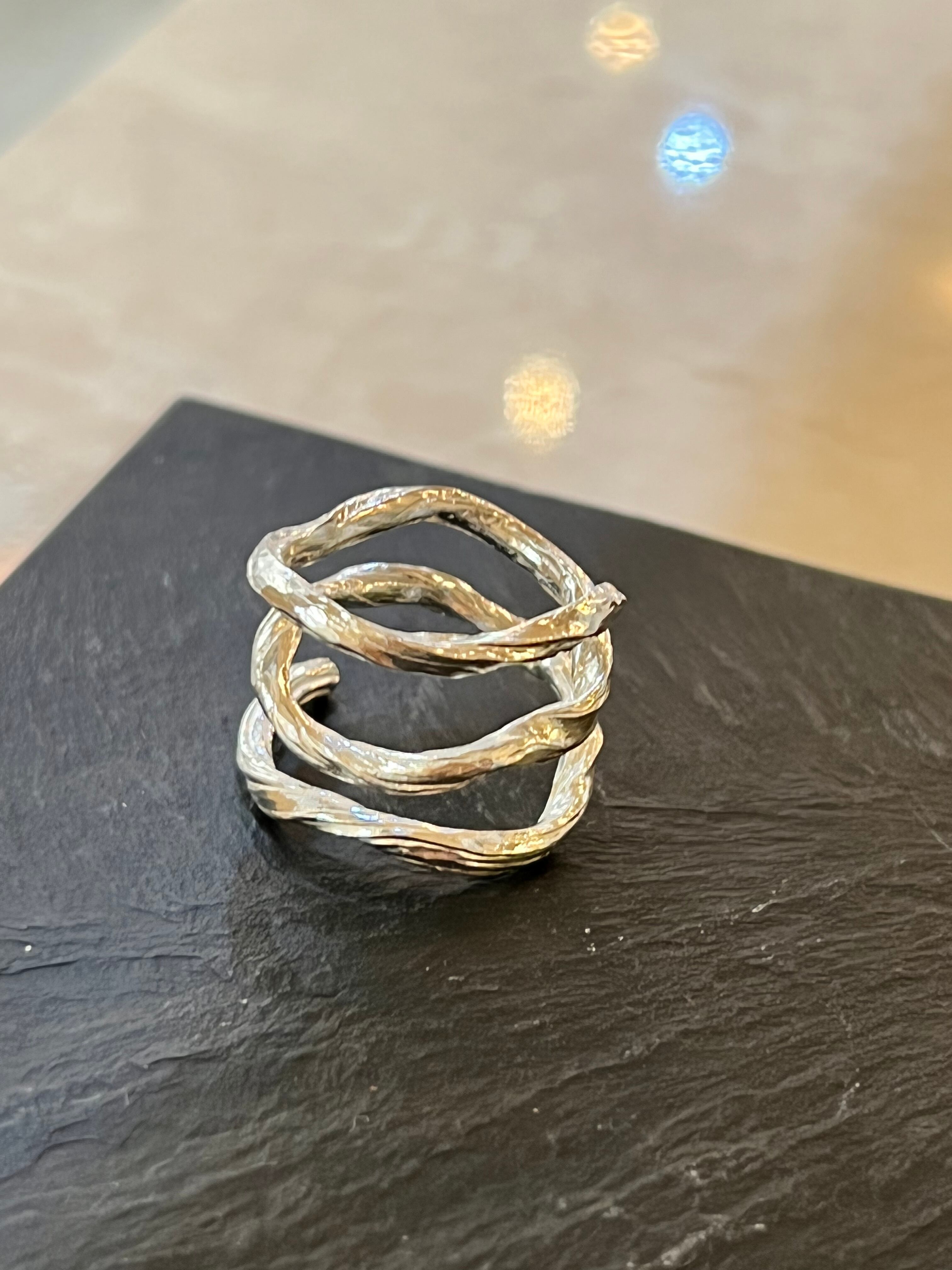 あえて全く同じ形にはせず、少しずつ叩きながら、それぞれの曲がる特性を活かして形造りました。