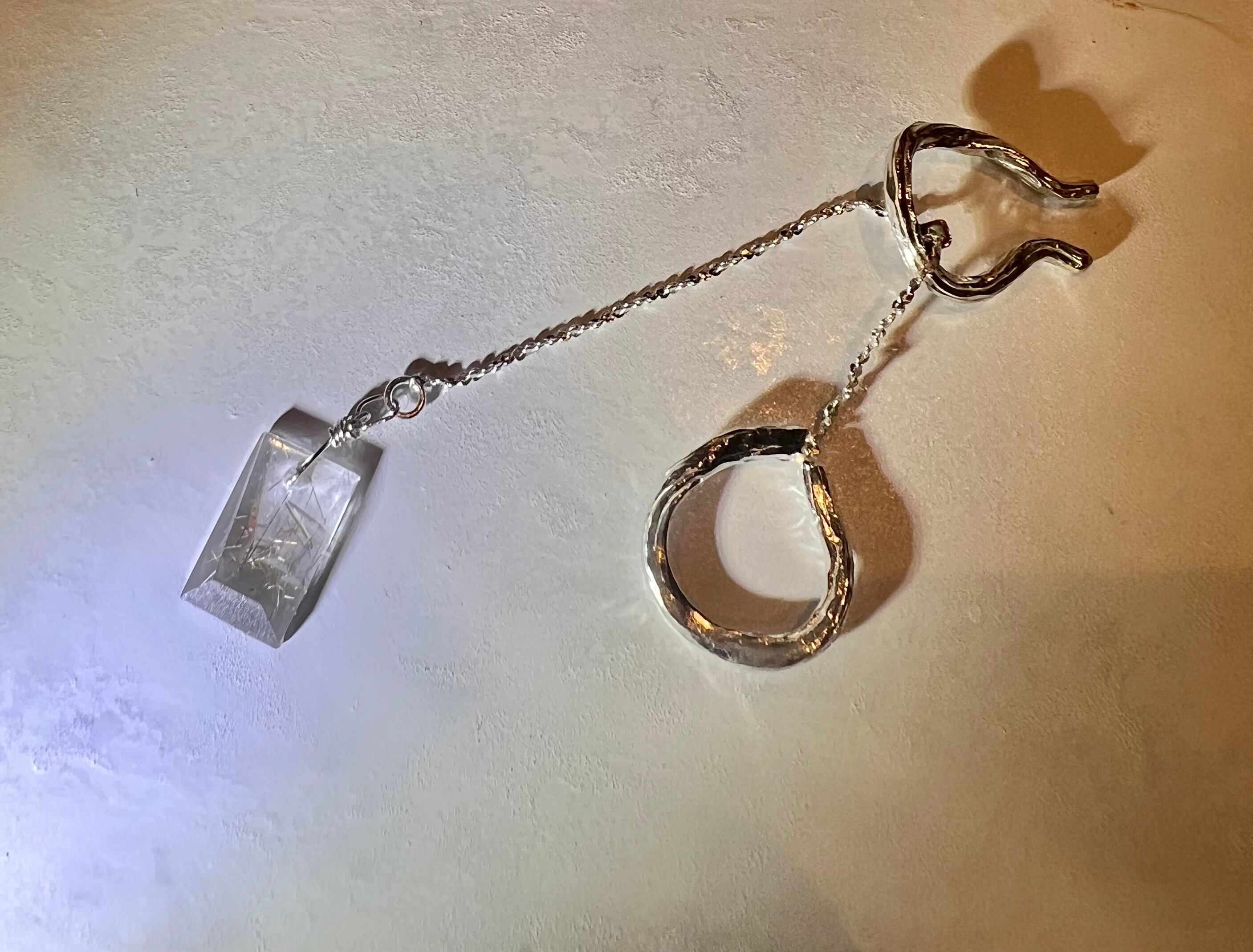 A stylish ear cuff with adjustable chain lengths, allowing you to customise it to suit your personal style.