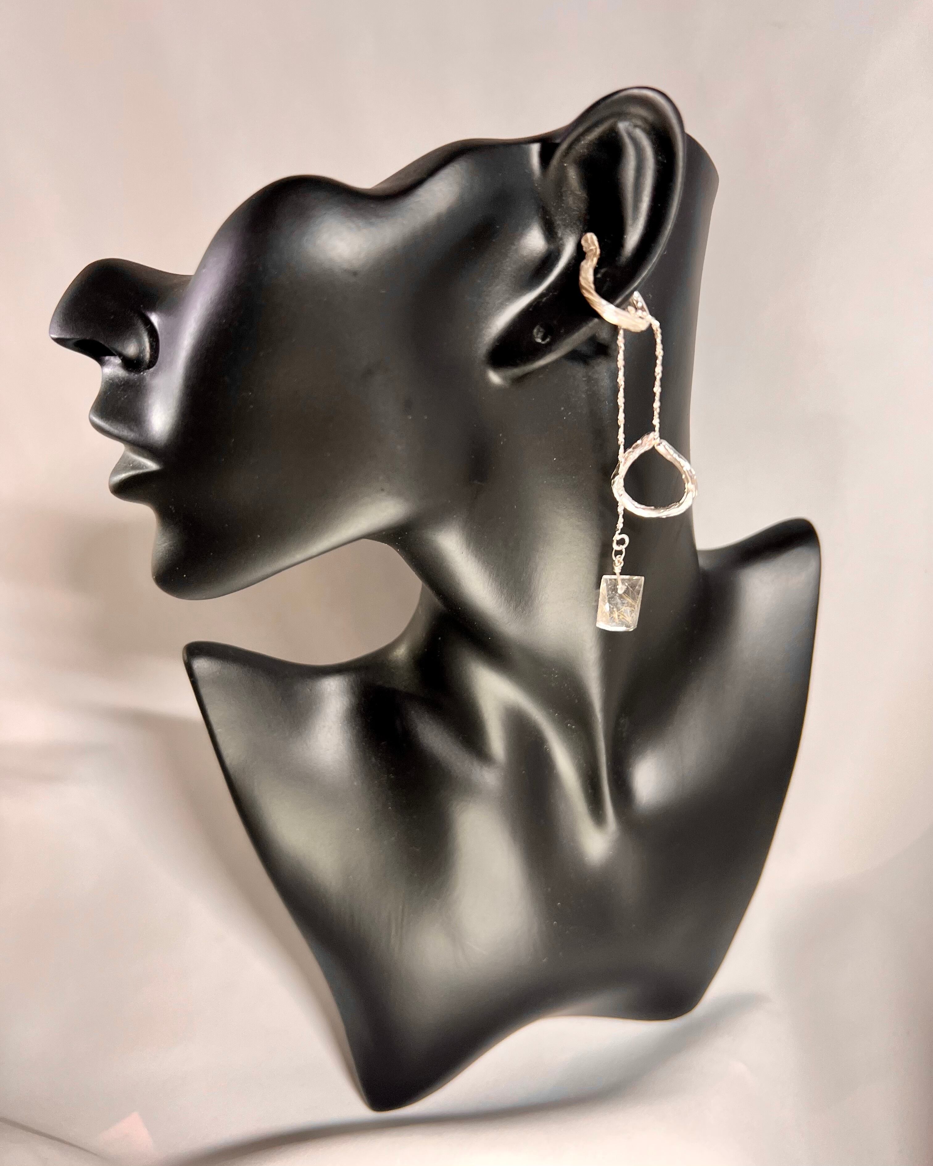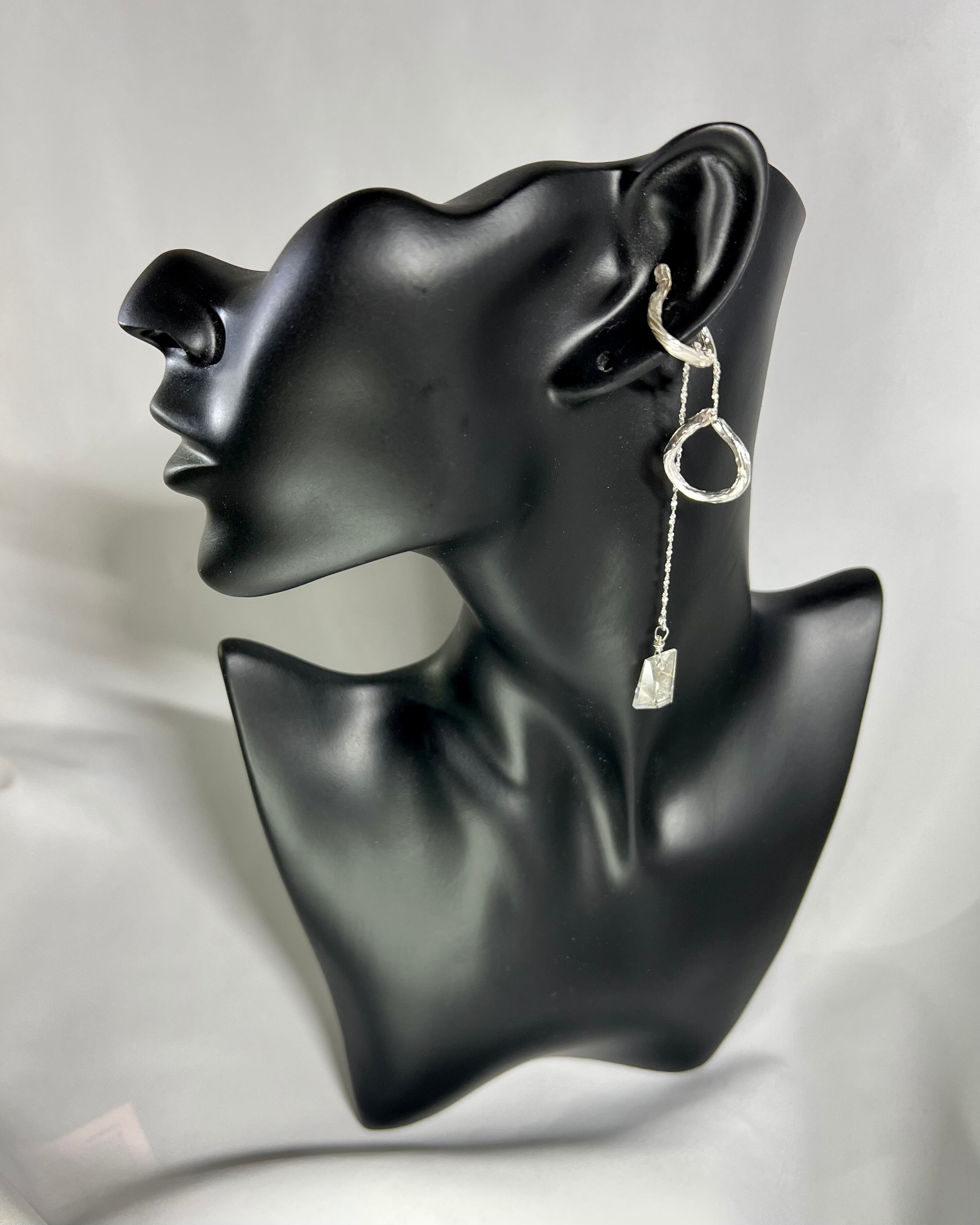 左右のチェーンの長さが変えられる、スタイリッシュなイヤカフ