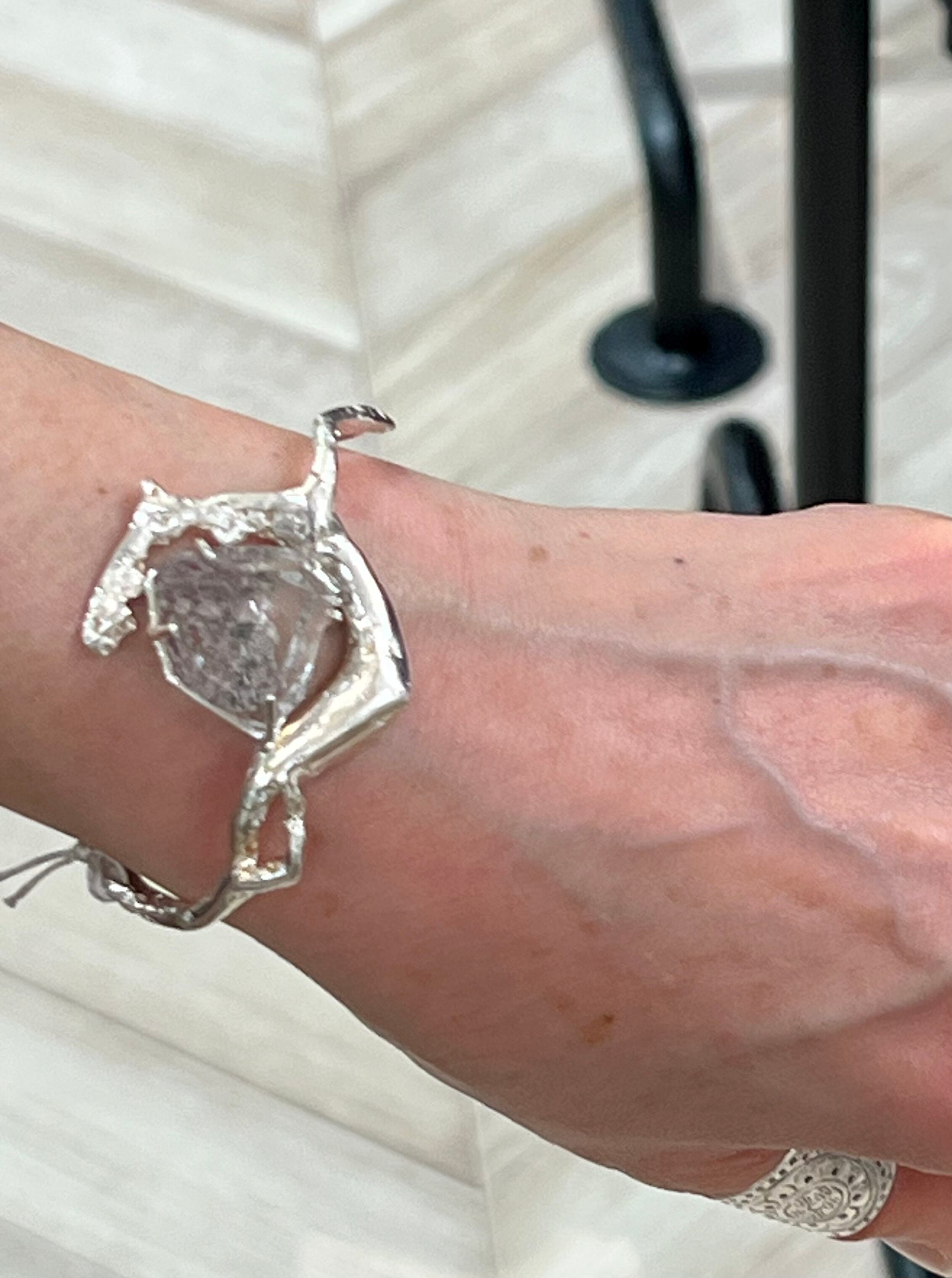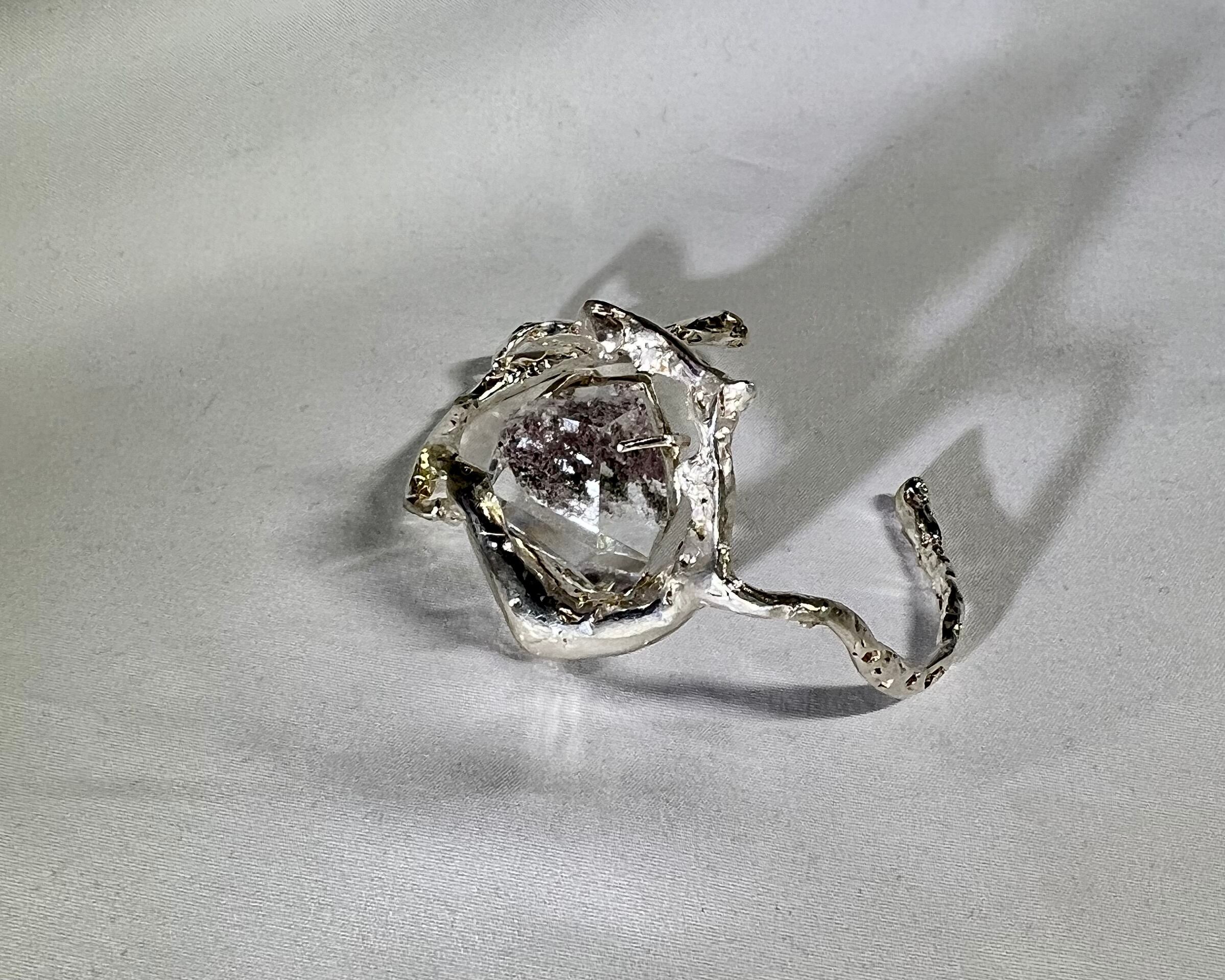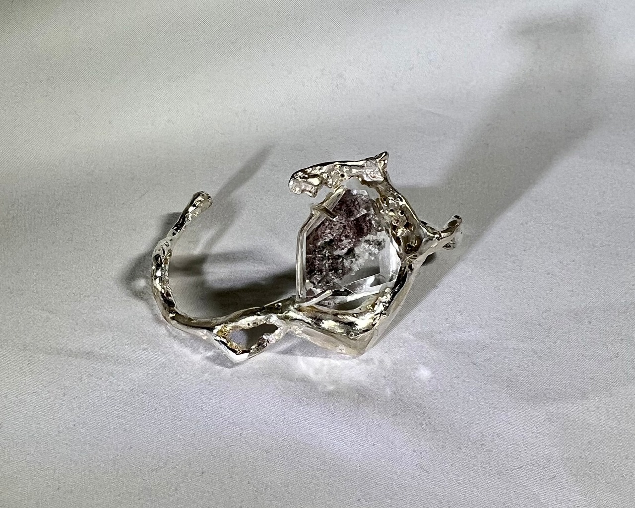 The Hidden Garden Bangle is designed to evoke the tranquility and beauty of a serene garden deep within the forest. Its transparency and the subtle hues of the inclusions are captivating, inviting you into a sweet, otherworldly space each time you gaze upon it.