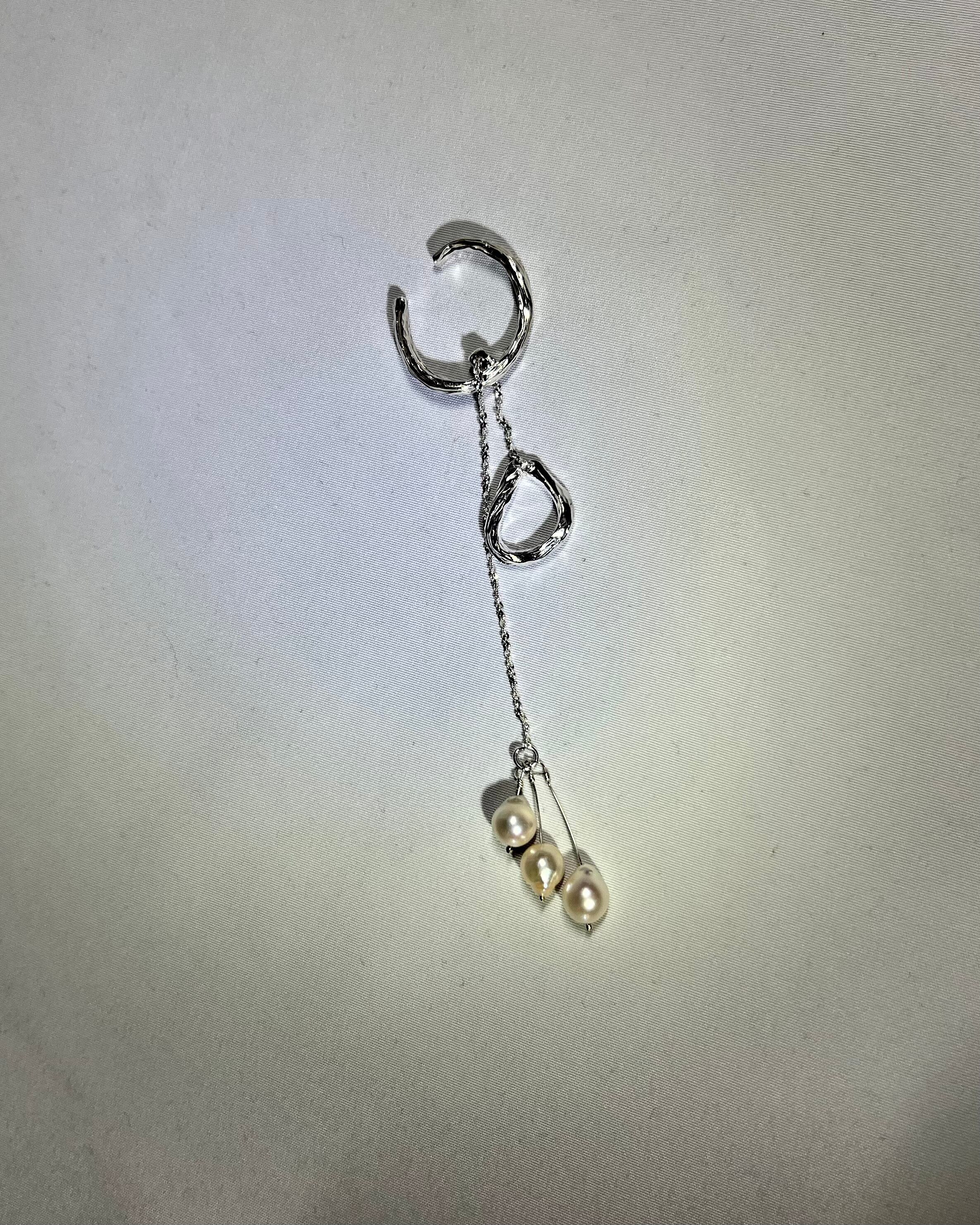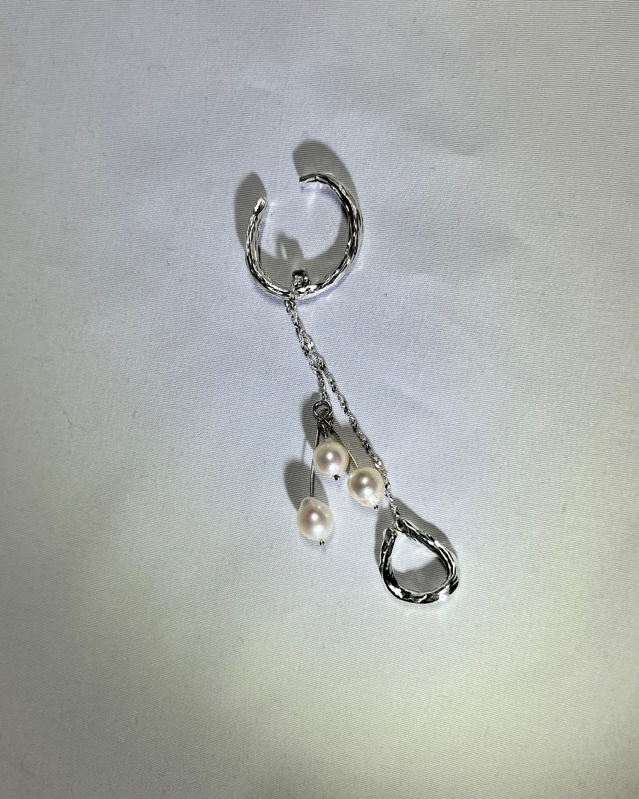An adjustable chain ear cuff designed with twisted silver loops and radiant Akoya pearls, perfect for adding charm to any occasion. You can adjust the chain length to create different looks, making it suitable for both everyday wear and formal events.